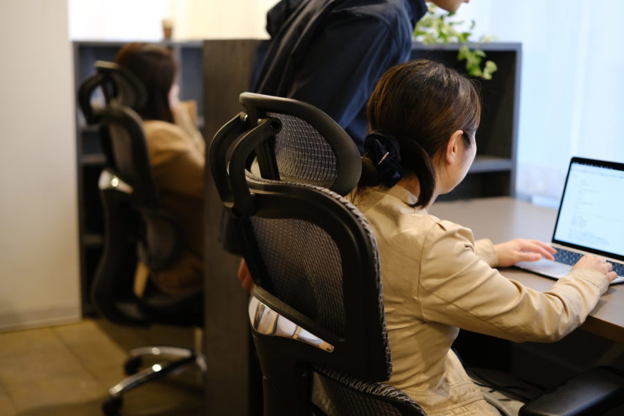 壁向き1100×650のデスクで作業に没頭できる席です。